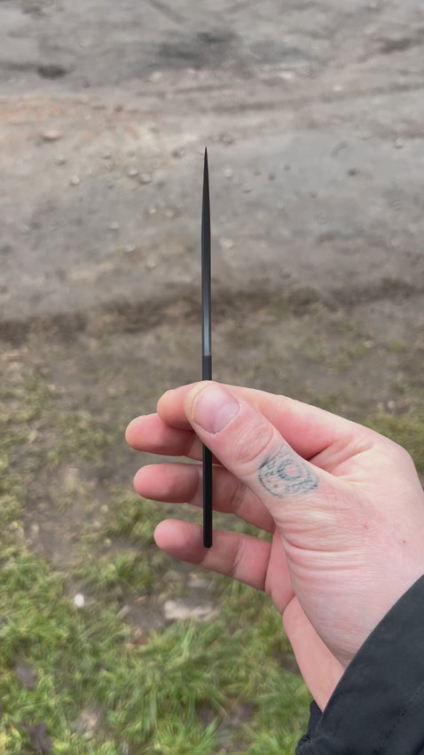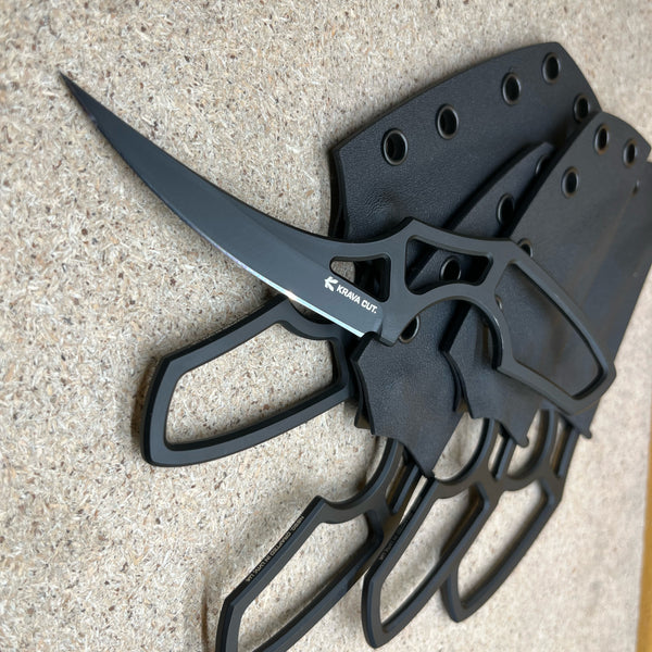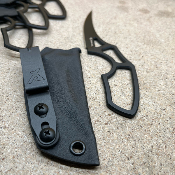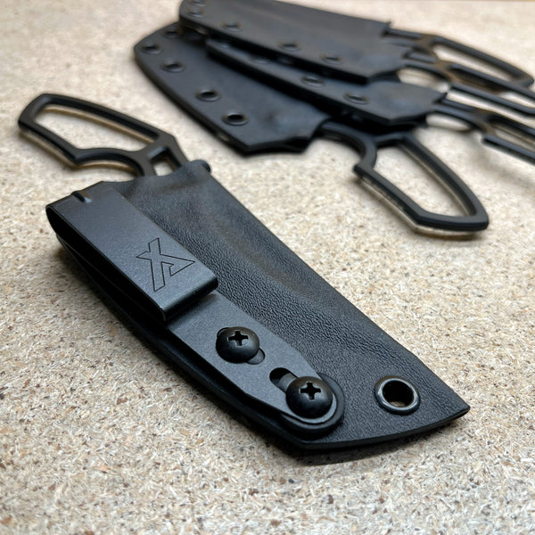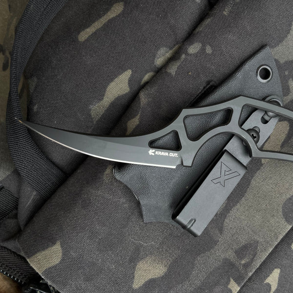 Загальна довжина - 162mm Довжина клинка - 82mm Товщина - 4mm Кобструкція - Full tangСталь - K110 Твердість - 60одПокриття - Cerakote Руківя - СкелетнеПіхви - Кайдекс, сталева поясна кліпсаЗроблено в Україні