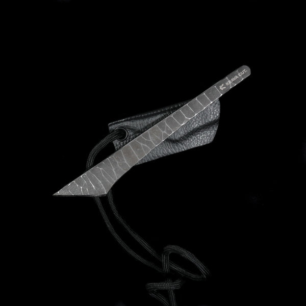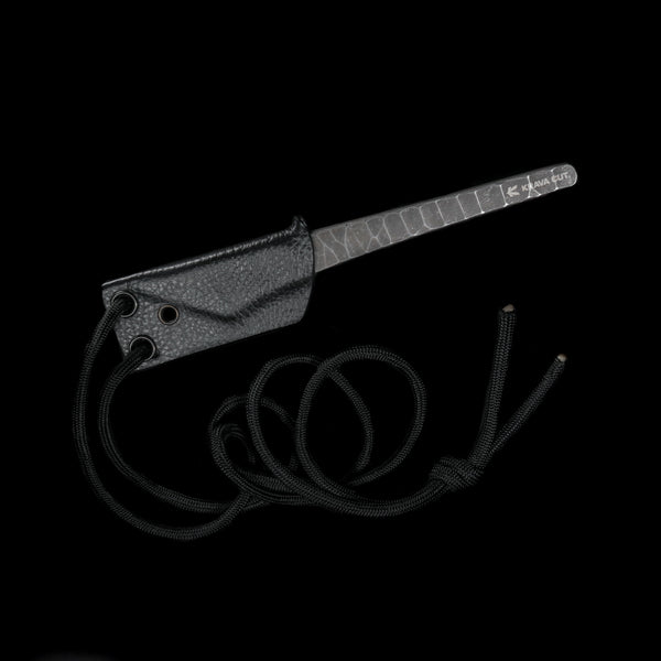 Загальна довжина - 135 мм Довжина клинка - 26 мм Товщина леза - 3 мм Конструкція - Full tang Сталь - інструментальна сталь D2 Твердість - 60HRC Оздоблення леза - Blackwash. Ручка - почорніла з кам'яною структурою. Чохли - шийні піхви Kydex. Країна походження - Україна