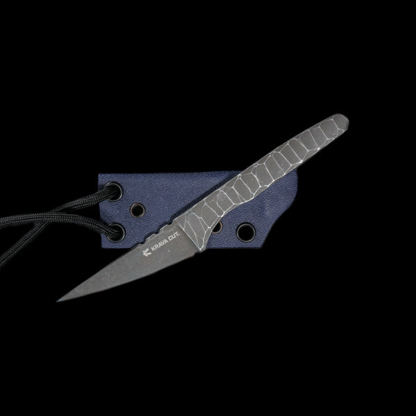 Загальна довжина - 143 мм Довжина клинка - 60 мм Товщина леза - 3 мм Конструкція - Full tang Сталь - інструментальна сталь D2 Твердість - 60HRC Оздоблення леза - Blackwash Ручка - почорніла з кам'яною структурою Чохли - шийні піхви Kydex Країна походження - Україна