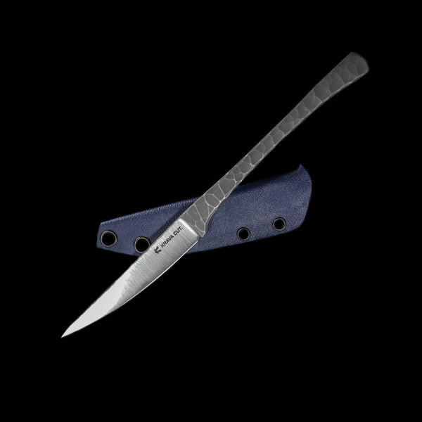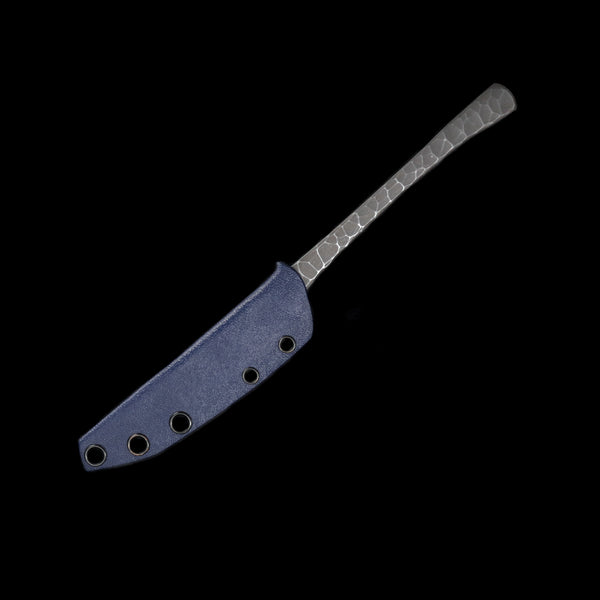 Загальна довжина - 195 мм Довжина клинка - 80 мм Товщина леза - 2,5 мм Конструкція - Full tang Сталь - інструментальна сталь D2 Твердість - 60HRC Оздоблення леза - сатин Ручка - почорніла з кам'яною структурою Чохли - шийні піхви Kydex Країна походження - Україна