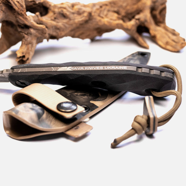 Ручка - ваги G10, оброблені піскоструминним способом, встановлені на гвинти GR5 Ti.