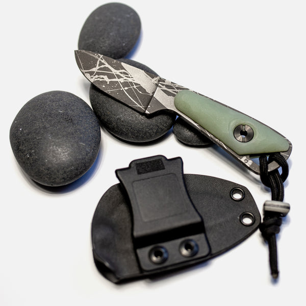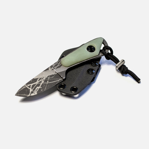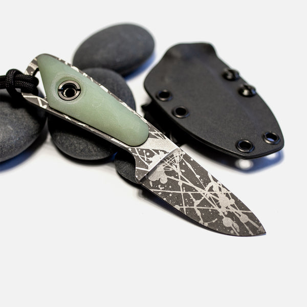 Загальна довжина - 150 мм (5 29⁄32 дюймів) Довжина леза - 60 мм (2 23⁄64 дюйма) Товщина леза - 3,5 мм (0 9⁄64 дюйма) Конструкція - ніж Skeleton Full Tang Лезова сталь - інструментальна сталь D2 Твердість - 60hrc Оздоблення леза - Хаотичні бризки Ручка - ваги G10, оброблені піскоструминним способом, встановлені на титановий гвинт GR5. Чохли - кайдекс, кріплення на пояс. Країна походження - Україна