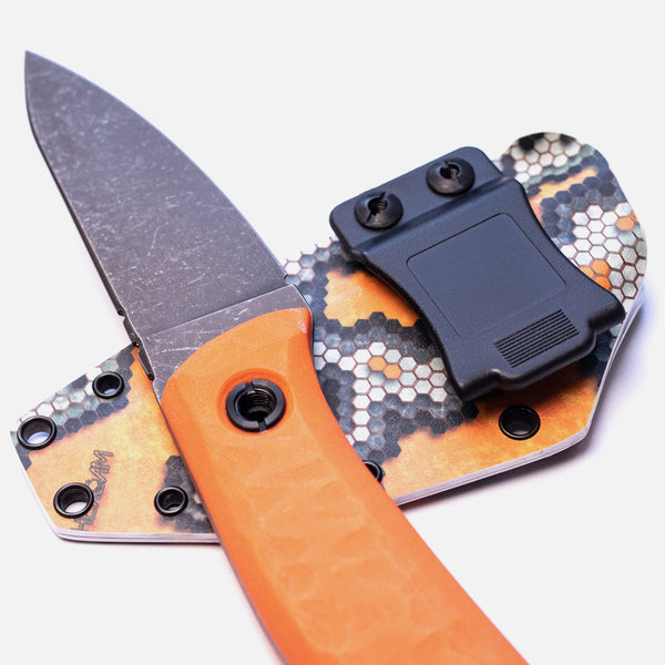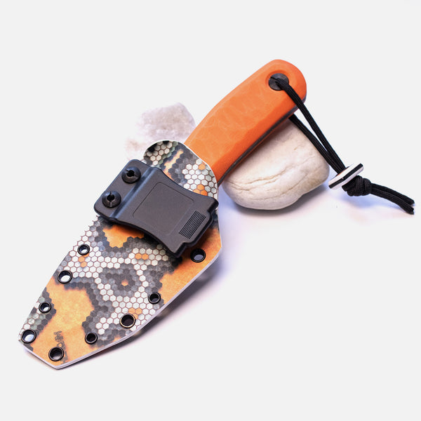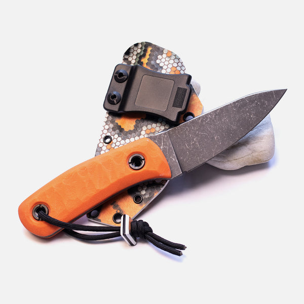 Загальна довжина - 210 мм Довжина клинка - 94 мм Товщина леза - 4 мм Конструкція - Full tang Blade Steel - інструментальна сталь Sleipner Твердість - 60-61hrc Оздоблення леза - Blackwash Ручка - піскоструминна луска G10. Чохли - кайдекс, кріплення на пояс. Країна походження - Україна